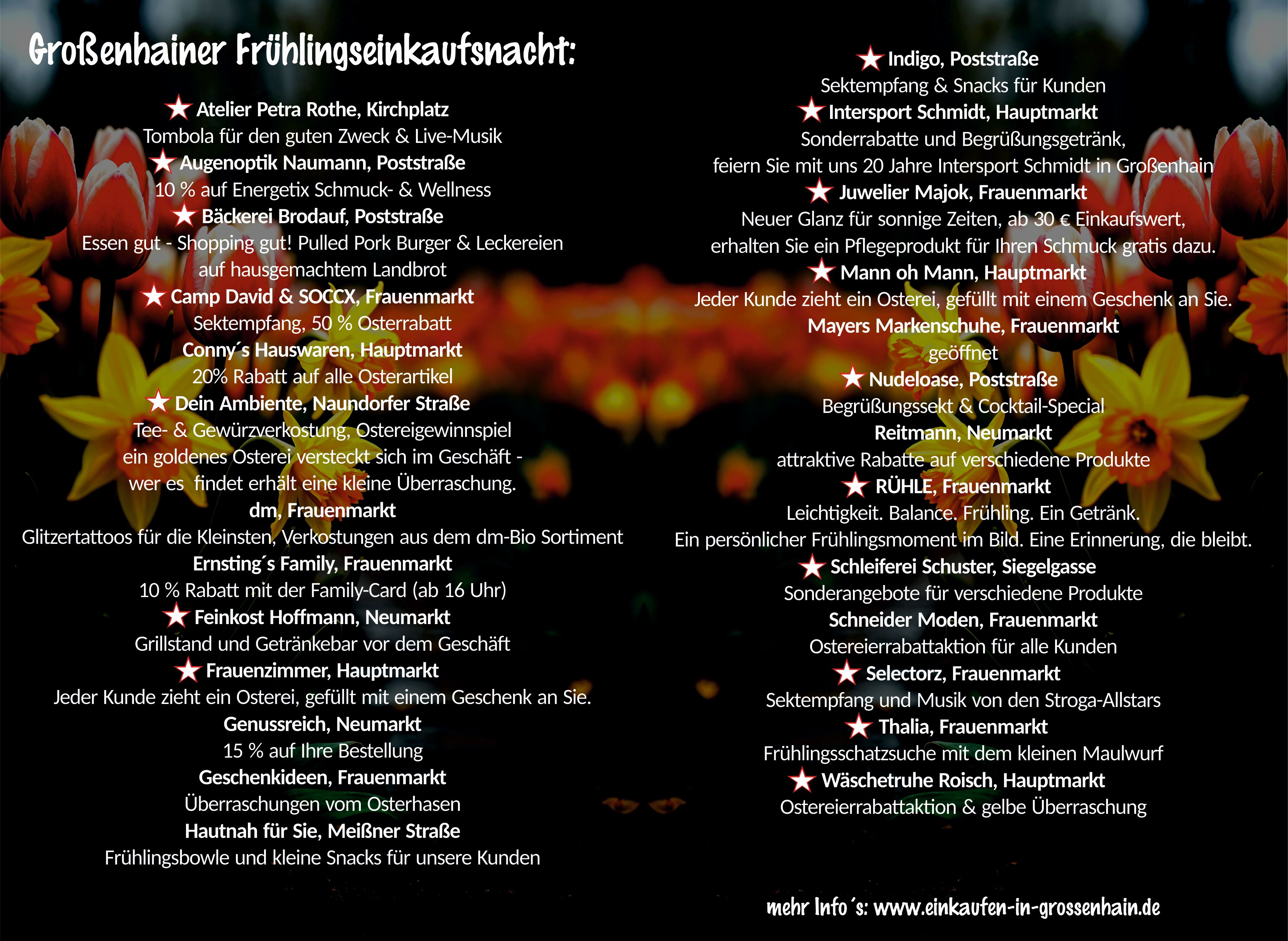 - Am 27.03.2026 von 16 – 22 Uhr bei einem der teilnehmenden Geschäfte einkaufen. (sind mit einem Stern im Flyer markiert)